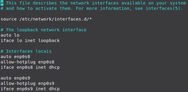 Uma vez que identifiquei minhas interfaces enp0s8 e enp0s9 vamos editar as configurações conforme nossa necessidade.