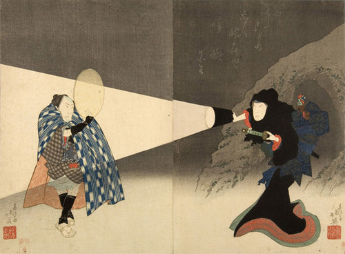 “ Shunbasai HokueiThe Kabuki Actors Iwai Shigaku I and Bando Jutaroca. 1832woodblock”