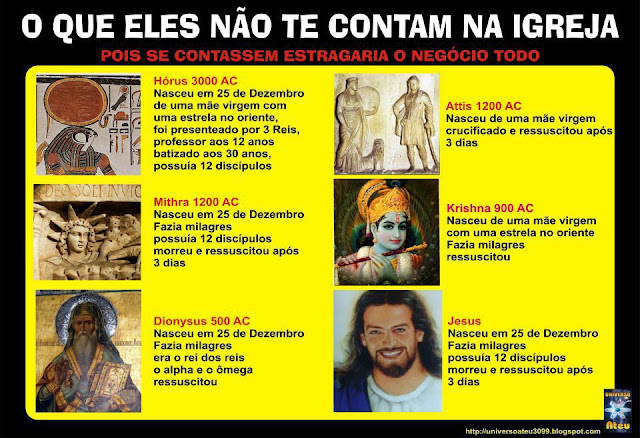 Neste trecho do filme Zeitgeist é abordada a maior história da humanidade, que de fato, jamais existiu. O cristianismo nada mais é do que uma cópia descarada de diversas crenças antigas, que nada mais são que interpretações astrológicas. Não há de fato um deus, e muito provavelmente, nunca existiu também um Jesus do qual a religião cristã se refere.