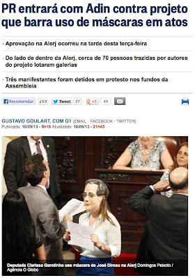 - Isso afasta a verdadeira democracia. Hoje não há dúvidas de que as regras para se prender alguém mascarado são muito confusas. É difícil saber que o mascarado é infrator ou não. Neste momento, o mais importante é que a polícia tenha o salvo conduto para identificar e se for o caso prender os mascarados - disse a deputada.