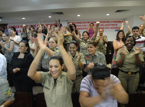 "Em um processo cheio de momentos tensos, finalmente um desfecho feliz. Agora as nossas mulheres militares podem comemorar o fim do tratamento preconceituoso e degradante. A nossa sensação é de alívio e acima de tudo, dignidade. Gostaríamos de agradecer aos parlamentares que se sacrificaram para comparecer na sessão de hoje para esta votação, em pleno recesso , em sessão extra não remunerada. Com um quórum apertado, de 27 deputados presentes, a emenda foi aprovada unanimemente".
