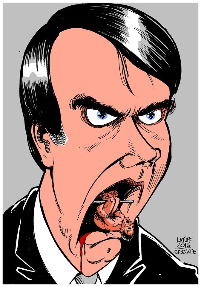 | Bolsonaro discursando, na charge de Carlos Latuff |