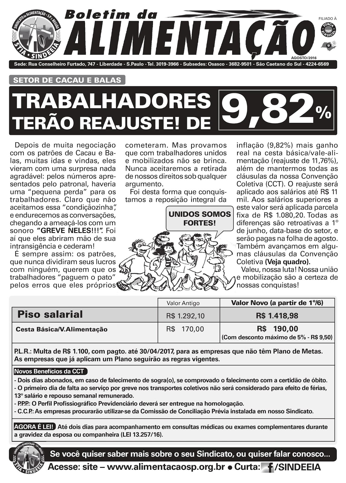 Fica mantida a data base para os trabalhadores da Inaceres Industrial e Comercial Ltda. no dia 01 de outubro.