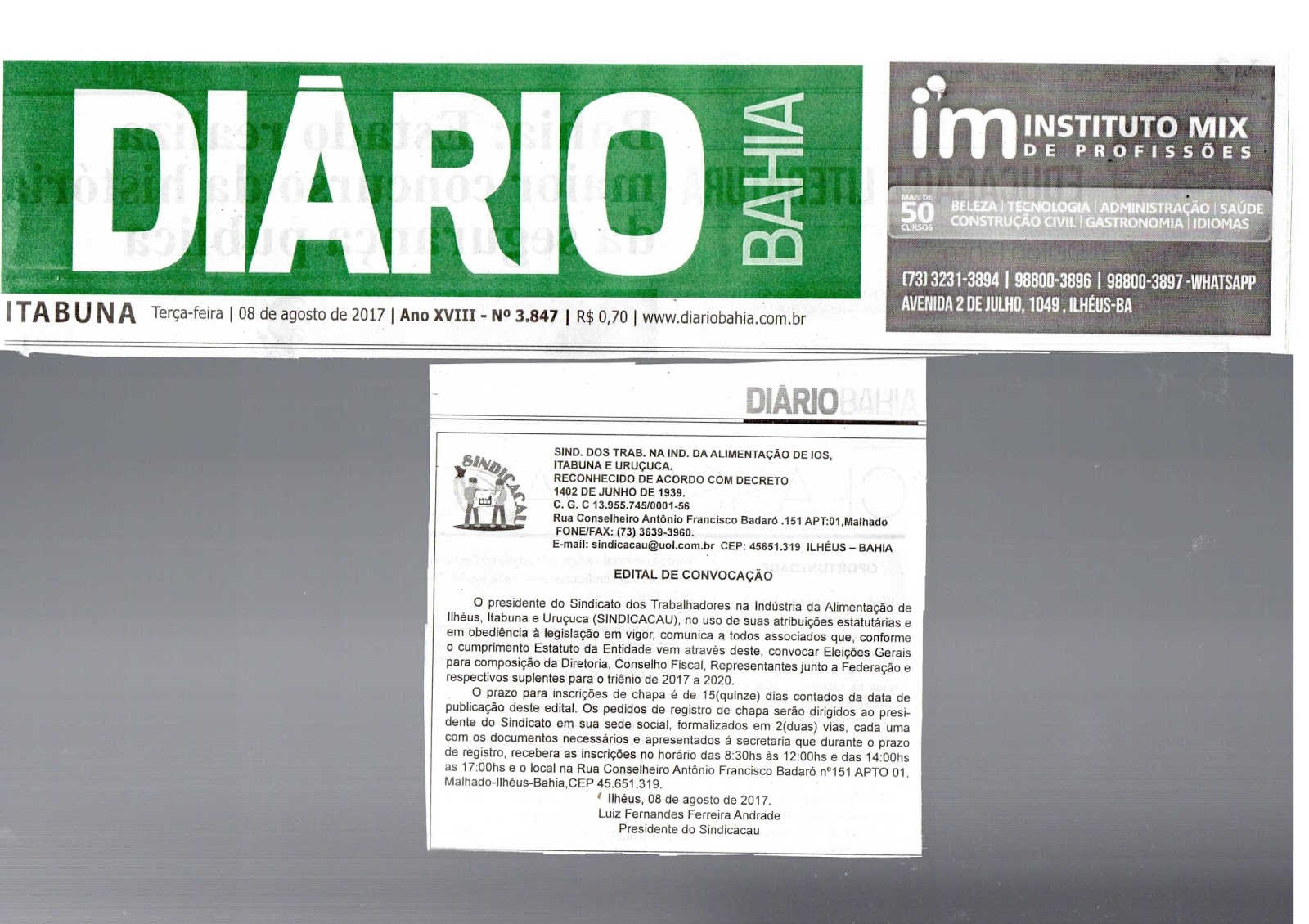 ELEIÇOES SINDICAIS 2017