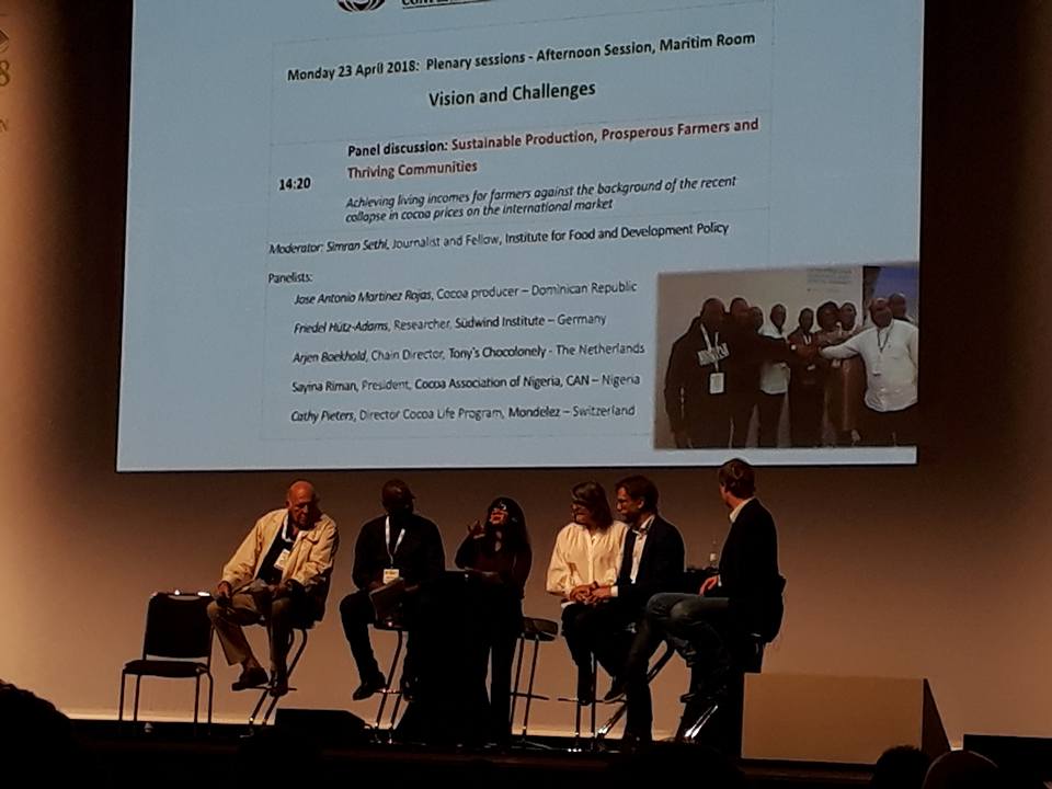 A 4ª Conferência Mundial do Cacau de 2018 dos dias 22-25 de abril de 2018.sediada em Berlim na Alemanha contou com a participação de 65 países e 1.500 inscritos de diversos segmentos como  agências governamentais, fabricantes de chocolate, empresas comerciais, processadores de cacau, empresas envolvidas em logística comercial, finanças e seguros, bem como fornecedores de insumos agrícolas e tecnologia de processamento e agricultores de cacau.discussões buscaram envolver as partes interessadas mais influentes dos países produtores, o comércio e a indústria de chocolate para moldar o futuro do setor de cacau
