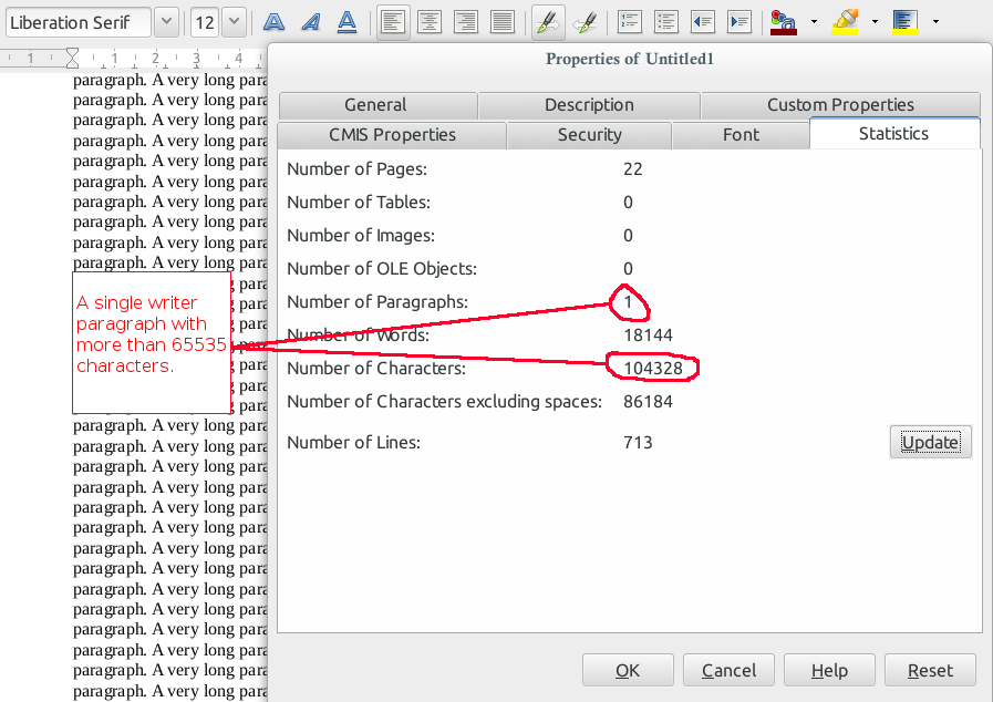Isso irá melhorar a compatibilidade com MSWord que não tem limite de 64k em seu comprimento parágrafo, o que obrigava o importador em dividir longo parágrafos em dois ou mais. E isso também aborda ao pedido de recurso para suportar longos parágrafos de escritor, a fim de apoiar o costume em algumas localidades (Brasil, e em outros países), onde há, aparentemente, um requisito para gravar minutos de certas classes de reuniões em um único parágrafo.