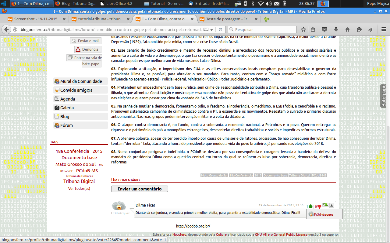 Os comentários podem receber votos POSITIVO (verde) ou NEGATIVO (vermelho) para validar ou não as propostas do debate. Além de poderem ser comentadas.